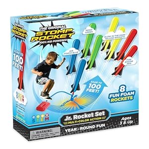Stomp Rocket Jr Multi-Color Rocket Launcher for Kids, 8 Rockets – Fun Outdoor Kids Gifts for Boys & Girls – STEM Toy Foam Blaster Set Soars Up to 100 Feet – Ages 3 & Up